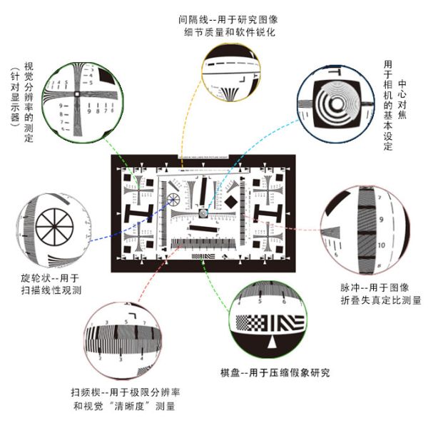 Resolution test chart is the standard proof which can provide aided testing for vertical resolution and horizontal resolution of actual shooting.